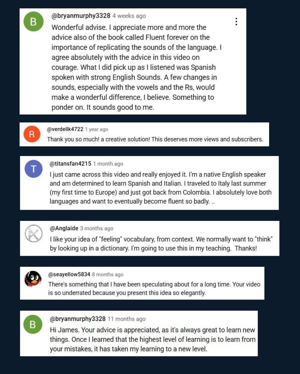 Lifetime access to the Discord community included after you buy this once (it's a one-off fee). You'll get help from other language learners and also help from myself on any questions you have while making your way though the course.